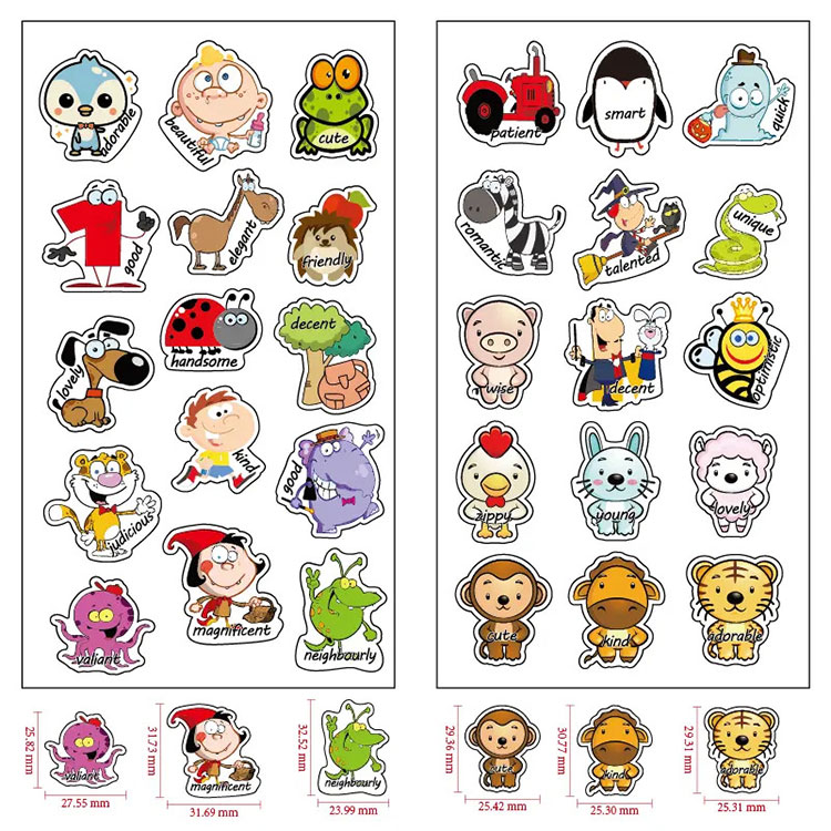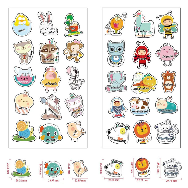 مااستیکرهای جایزه کارتونیبا هزاران پیام زیبا، متفکرانه، حیوانات و طرحهای سرگرمکننده، و رنگهای درخشان طراحی شدهاند تا برای دانشآموزان پیش دبستانی تا دبستان جذابتر و هیجانانگیزتر شوند.