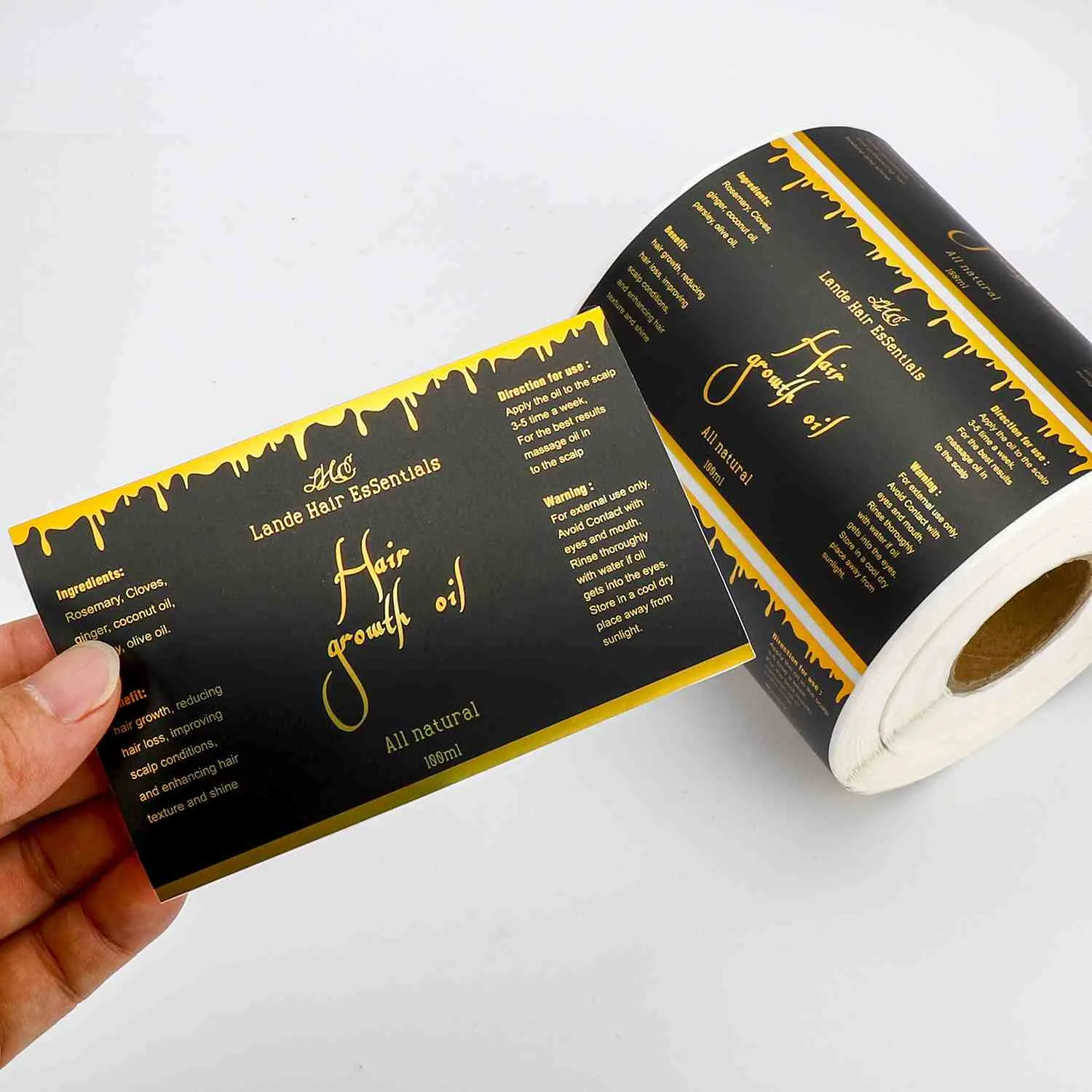 لیبل های سفارشی فویل طلا، با استفاده از بسترهای با کیفیت بالا و تکنیک های نفیس چاپ ورق طلا، بافتی با کیفیت دارند. آنها را می توان در مشخصات و الگوهای مختلف مطابق با نیاز مشتری سفارشی کرد و نیازهای بسته بندی و شناسایی صنایع مختلف را برآورده کرد.