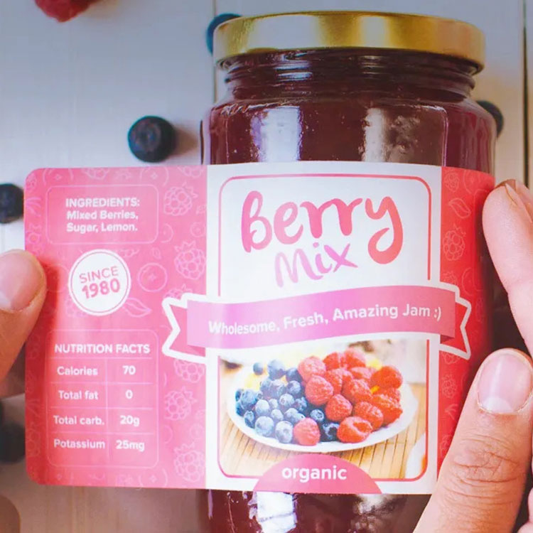 برچسب های مربابخش مهمی از بطری های مربا هستند.برچسب های مربانه تنها وظیفه انتقال اطلاعات محصول را انجام می دهد، بلکه در زیباسازی بسته بندی و افزایش تصویر برند نیز نقش دارد.پک جوجو'sبرچسب های مربااز مواد با کیفیت بالا، همراه با طراحی نفیس و فناوری چاپ پیشرفته استفاده کنید تا اطمینان حاصل شود که برچسب ها ضد آب و مقاوم در برابر چربی هستند، در حالی که رنگ های غنی و بافت های ظریف را نشان می دهند.