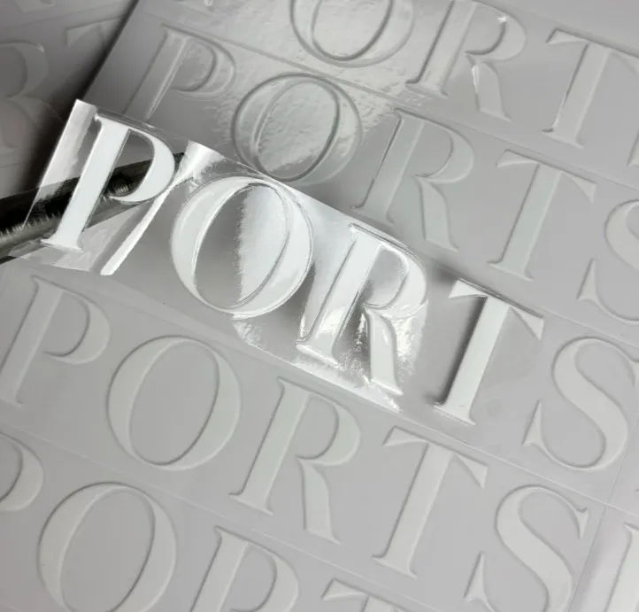 برچسب های کریستالی ، همچنین به عنوانبرچسب های انتقال UV، با استفاده از یک چاپگر مسطح UV برای اسپری جوهر سفید ، لاک و سایر لایه ها به صورت لایه بر روی یک فیلم کریستالی با چسب پشتی ساخته می شوند. سپس یک فیلم انتقال استفاده می شود و در آخر ، این الگوی برداشته می شود و با استفاده از فیلم به بیرونی ترین سطح جسم منتقل می شود. برچسب کریستال را می توان در خواست خود گیر داد ، پاره شد و بلافاصله استفاده می شود. این مشکل و سریع است و مشکل چاپ اشکال نامنظم را حل می کند.