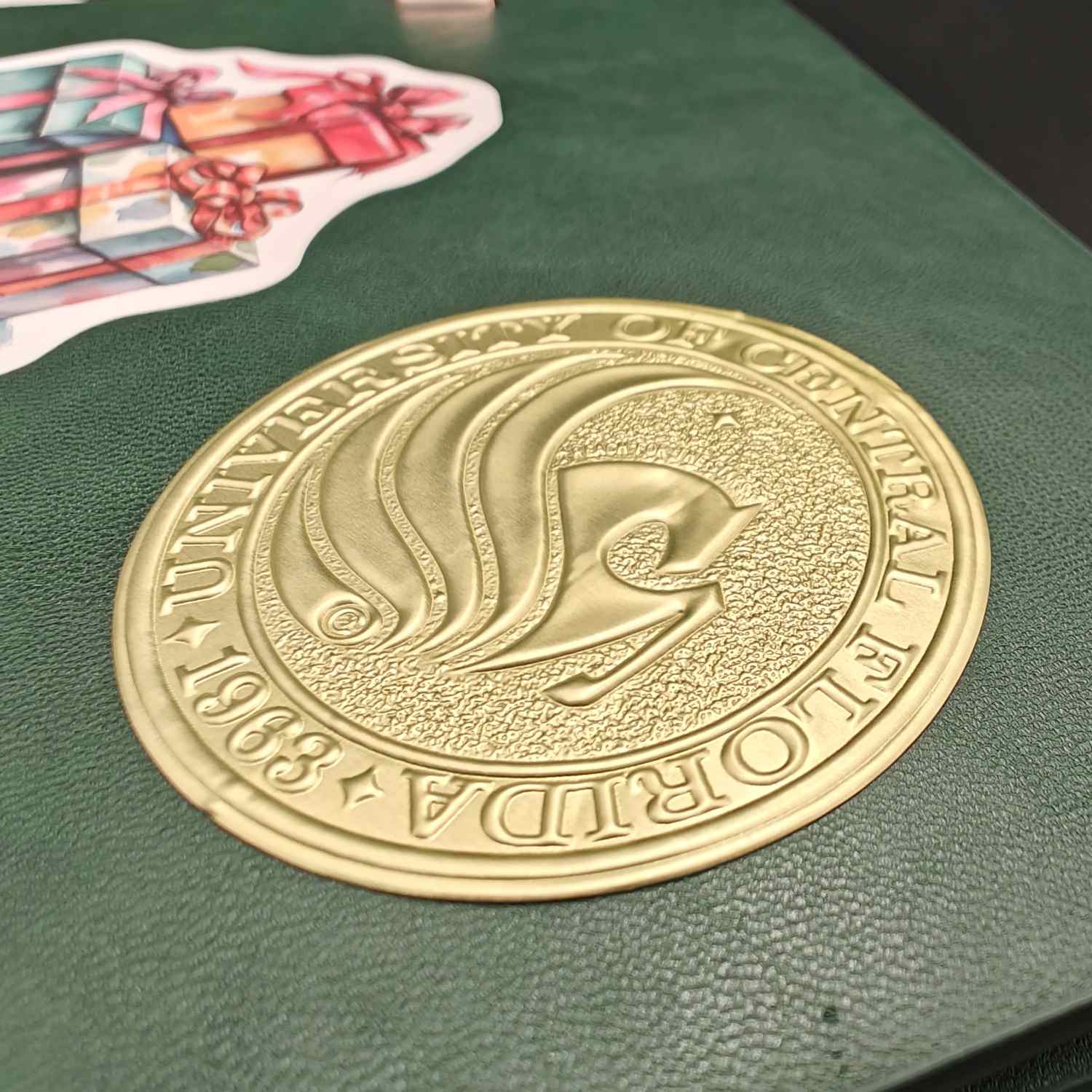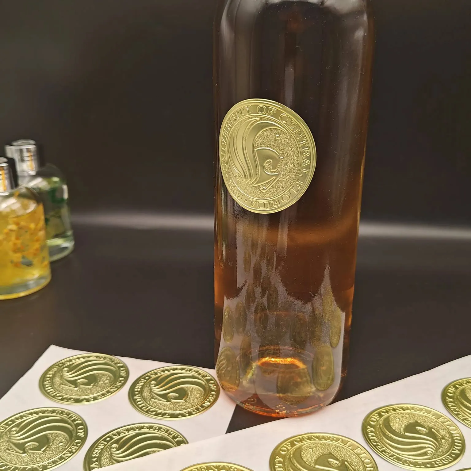 لیبلهای شراب برجسته فویل گرد یک برچسب خودچسب با پایه دایرهای است که در آن فویل فلزی از طریق فناوری مهر زنی داغ بر روی سطح مواد منتقل میشود و سپس الگوهای برجسته با استفاده از قالبهای مقعر و محدب فشرده میشوند. مانند یک مدال مینیاتوری، درخشش فلزی و حس لمسی سه بعدی برچسب می تواند فوراً حس برتر یک بطری شراب کامل را پس از چسباندن به آرامی روی بدنه بطری افزایش دهد.
